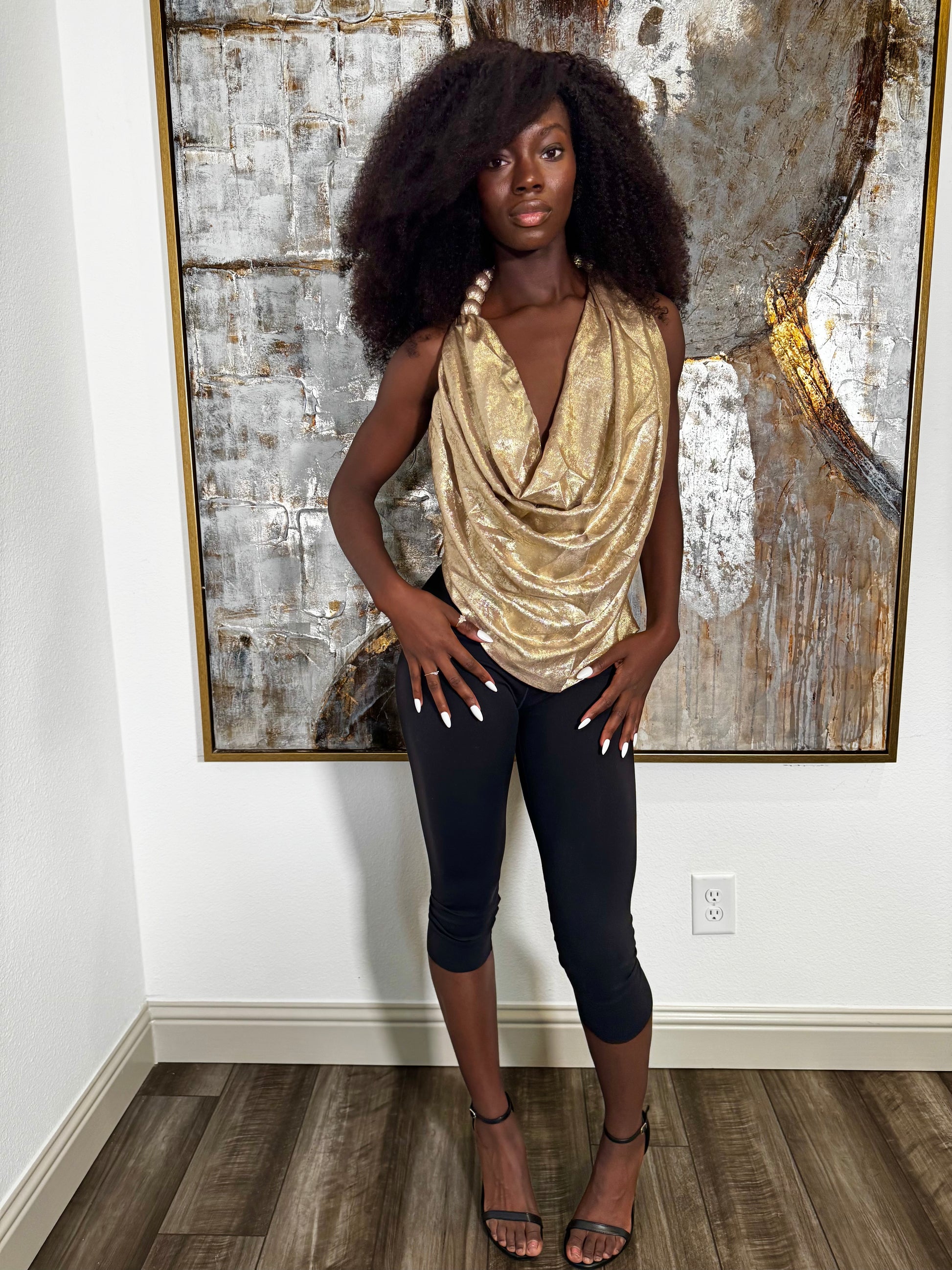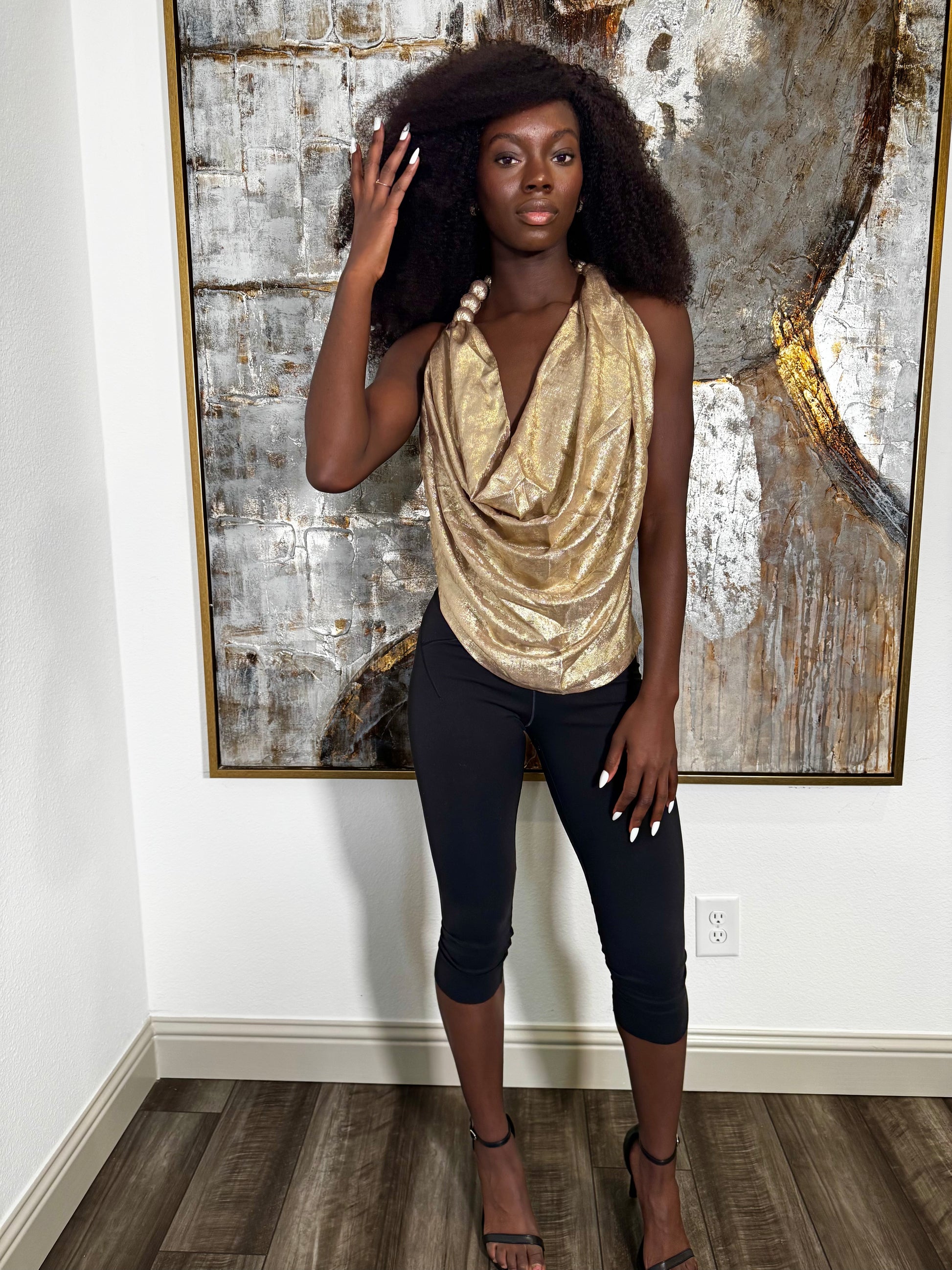 This stunning beaded neck open back top commands attention with its bold, fearless design. The intricate champagne gold beading adorns the neckline, creating an eye-catching focal point that radiates elegance and sophistication. The daring open back silhouette makes a powerful statement, perfect for those ready to turn heads and embrace their confidence. Whether you're heading to an upscale event or a night out, this piece transforms any moment into an unforgettable experience. Dare to stand out.