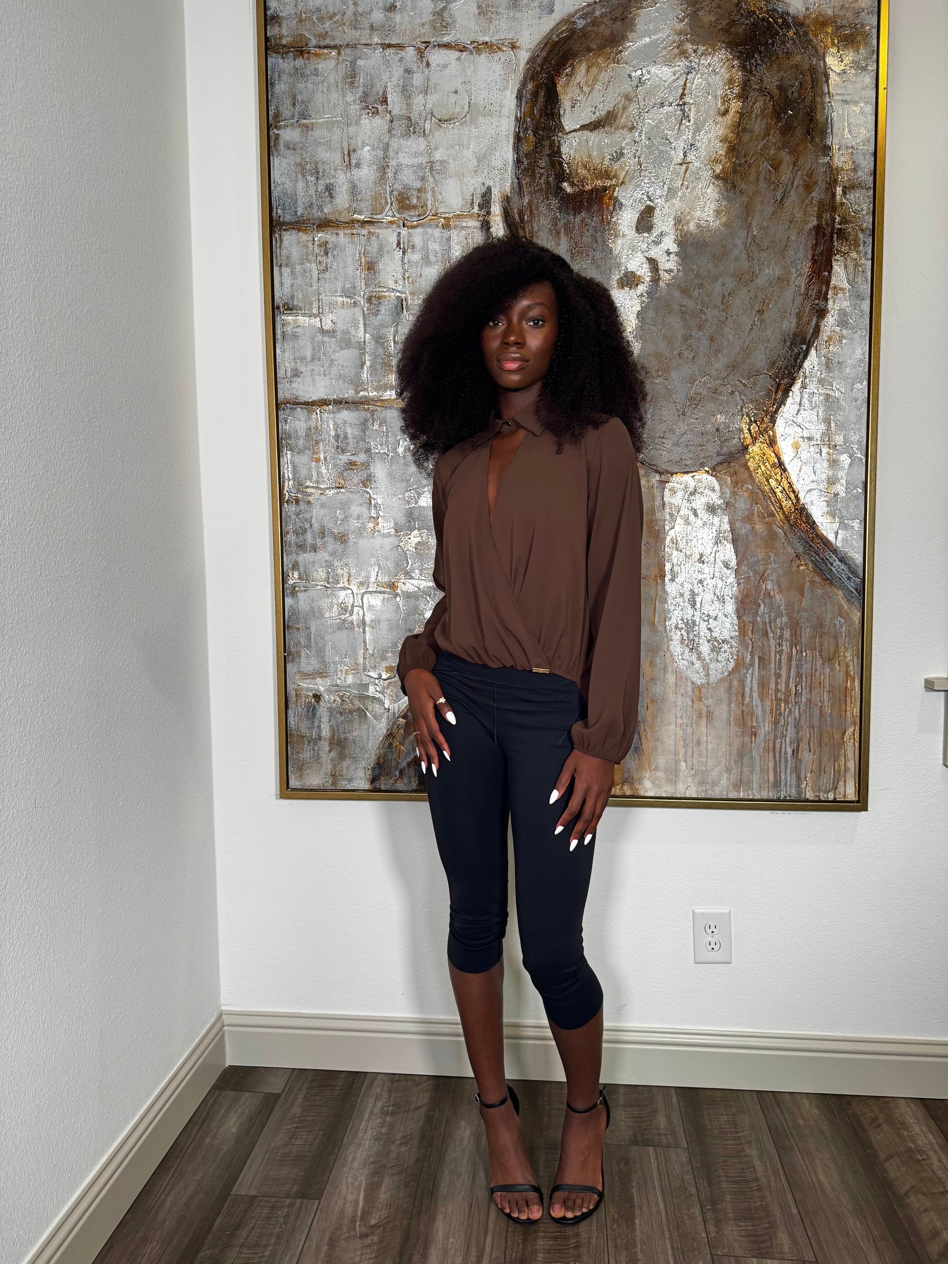 Dare to turn heads in this striking chiffon open collar top, where sheer elegance meets bold attitude, the daring open chest design commands attention. Delicate gold detailing adds a touch of luxury and sophistication, elevating your look from ordinary to unforgettable. Perfect for those who aren't afraid to make a statement and embrace their confidence with style.